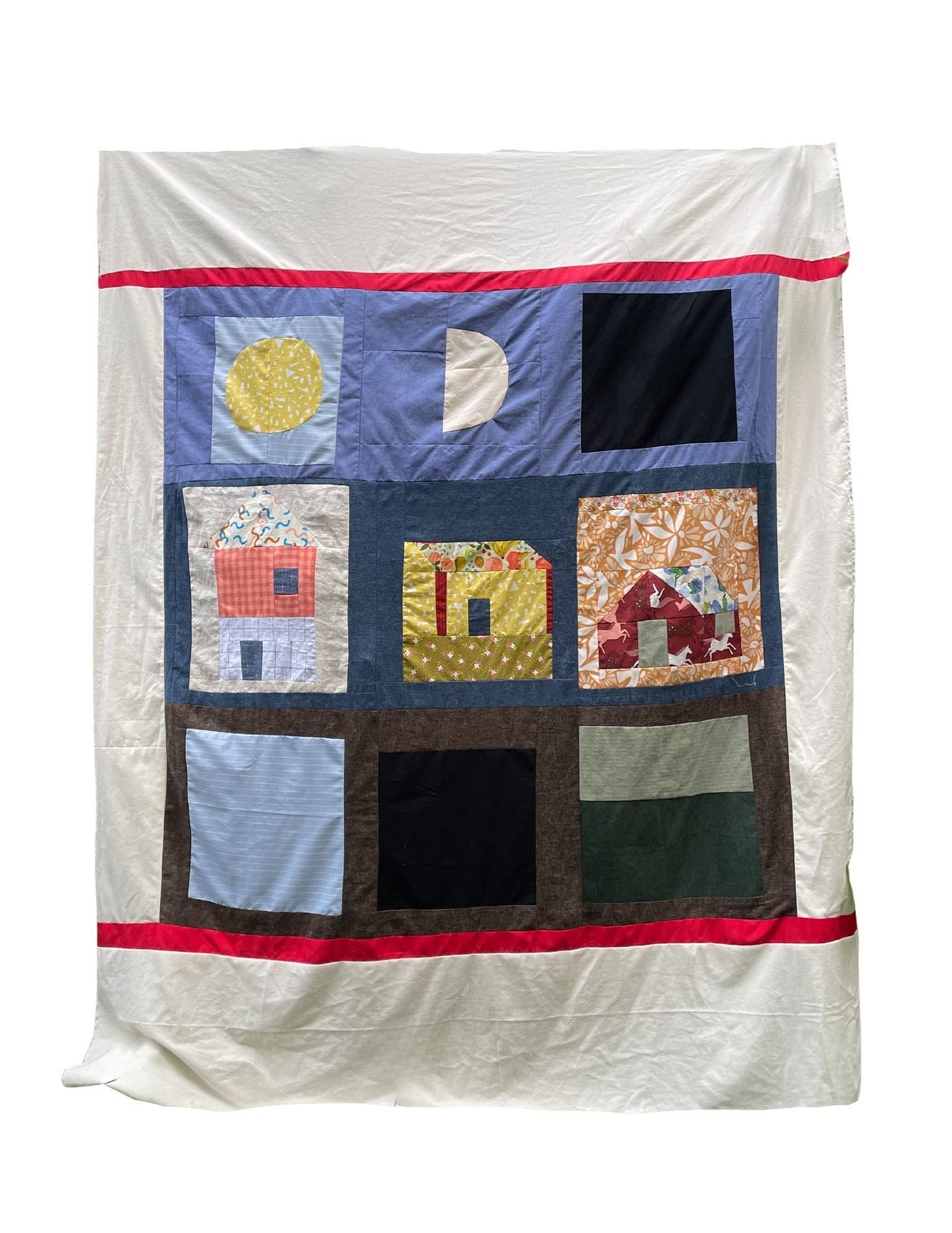 I’m calling this the Story Quilt but there’s not really an intended story I have in mind - I just think there could be. I see three homes, a waning moon above, and soil, water, and earth below. And colors that just make me feel . . . . homey and warm and earthy.
